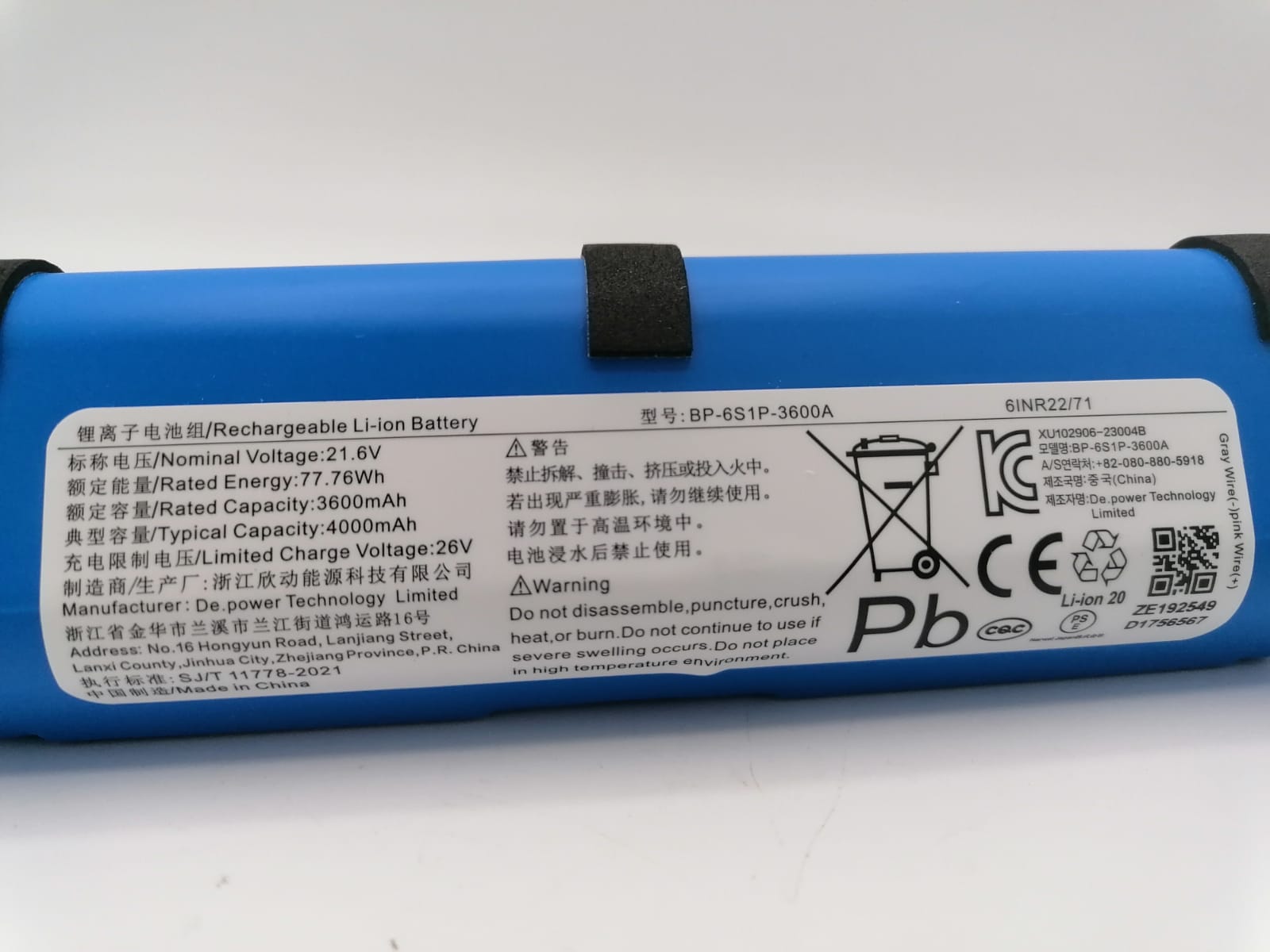 ROWENTA batteria li-ion da 21.6V per lavapavimenti X-CLEAN 10 GZ7035WO GZ7540WO
